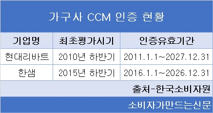 대기업 가구업체인 현대리바트와 한샘이 10년 이상 CCM 인증을 유지한 장수 기업으로 조사됐다.