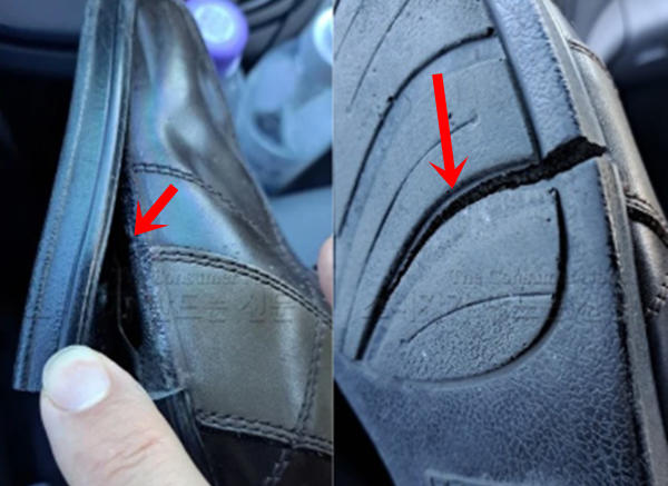 윤 씨에 따르면 구두를 신고 다닌 지 얼마 안 돼 오른쪽 밑창은 떨어져 덜렁거렸고 왼쪽 구두 바닥면도 디자인된 무늬를 따라 갈라졌다고 주장했다. 그는 품질 문제라고 생각해 제조업체에 무상 수리를 문의했다. 그러나 담당자는 “구매 후 6개월이 넘어 무상 수리가 불가능하다”고 답변했다.