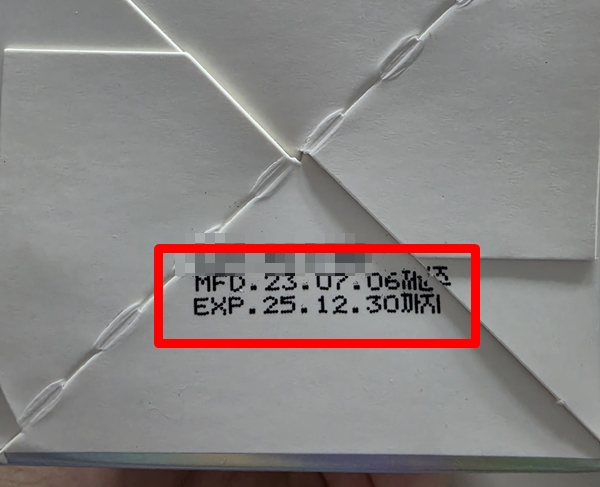 제품 포장 박스 밑면에서는 제조일이 2023년 7월, 유통기한은 2025년12월까지로 표기된 상태였다.