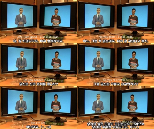 동영상 속 인공지능 응답기계는 까칠한 인사로 시작해 ‘신을 믿느냐’는 질문까지 던진 후 다시 까칠한 인사말로 대화를 종료한다.