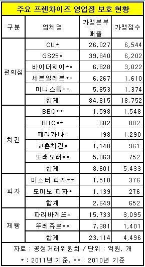 이들 업체의 총 가맹점수(2010~2011년)는 1만8천752개, 총 매출은 8조4천815억원에 이른다.