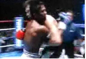 체력이 급격히 떨어진 쁘아카오의 헛점을 놓지지 않고 사토는 오른쪽 라이트훅으로 쁘아카오의 관자놀이를 공략했다.