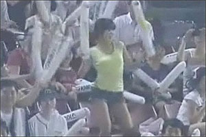 15일 잠실서 벌어진 두산-SK에서 타이트한 핫팬츠에 민소매 차림으로 섹시댄스를 선보인 '두산 댄스녀'가 그 주인공. 그녀는 관중석에서 양 손에 막대풍선을 들고 허리를 유연하게 돌리며 열광적인 댄스를 선보였다.