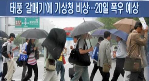 기상청은 "주말인 19일 태풍의 간접적인 영향을 받기 시작해 남부지방부터 비가 올 예정이며 20일에는 전국적으로 강풍을 동반한 많은 비가 예상돼 앞으로 발표될 태풍 정보에 유의해 줄 것"을 당부했다.