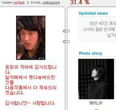 이준기는 미니홈피 감사 글에서 "응원과 격려에 감사드립니다.