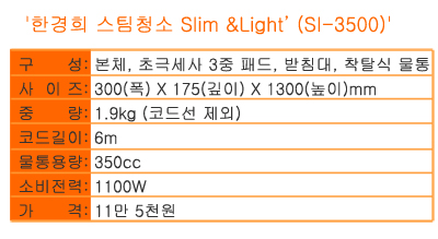 국내 스팀청소기 파워 브랜드 1위 한경희생활과학(대표 한경희 www.iHAAN.com)이 장마철 성수기를 맞아 초슬림 스팀청소기 신제품 ‘Slim & Light(SI-3500)’를 출시했다.
