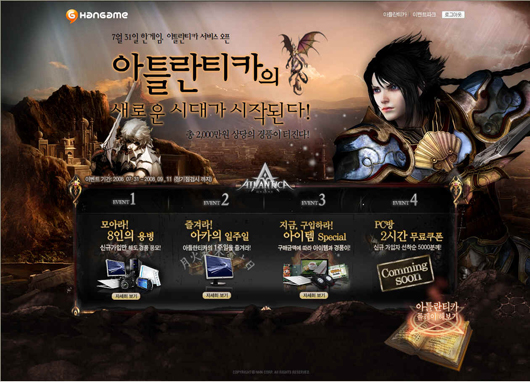 게임포털 한게임은 엔도어즈(대표 조성원)가 개발한 전략 MMORPG '아틀란티카'의 한게임 서비스를 금일 오후 12시부터 시작한다고 밝혔다.