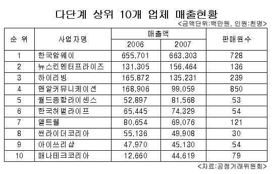 지난 7월2일 공정거래위원회가 국내 다단계 판매업체의 매출실적을 발표했다.