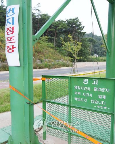 번지점프대에 올라가는 입구에는 '영업시간 외 출입금지. 추락사고 발생 시 일체 책임지지 않습니다'라고 쓰인 경고판이 붙어있어 보는 이들을 씁쓸하게 했다. (연합뉴스)