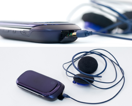 페블의 아래쪽 측면으로는 3.5mm 이어잭 단자가 있다. 이는 우리가 일반적으로 MP3에 꽂아 사용하는 이어폰을 그대로 휴대폰에 꽂아 사용할수있는 것이다.