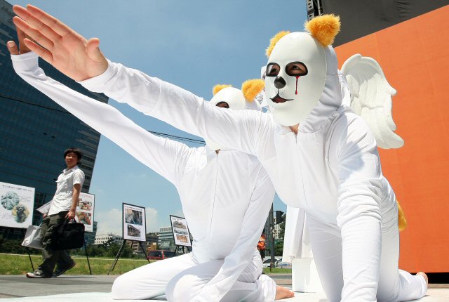 URL복사 기사공유하기 스크랩 프린트 메일보내기 글씨키우기 7일 서울 청계광장에서 동물자유연대 회원들이 폭력적이고 잔인한 '개 도살'을 중단할 것을 촉구하는 퍼포먼스를 하고 있다.(사진=연합뉴스) 저작권자 © 소비자가 만드는 신문 무단전재 및 재배포 금지 뉴스관리자 다른기사 보기 URL복사 기사공유하기 주요기사 삼성증권, 지난해 순이익 1조84억 원…주당 배당금 4000원 결의 [인사] 금융위원회 김동연 지사, 용인 반도체 현장 방문…"든든한 지원군이 되겠다" 에스티팜, 5600만 달러 규모 원료 공급계약 체결 KB금융, 1조 2000억 원 규모 자사주 861만 주 소각 보람의정부장례식장, 의정부성모병원과 MOU 체결...장례서비스 지원