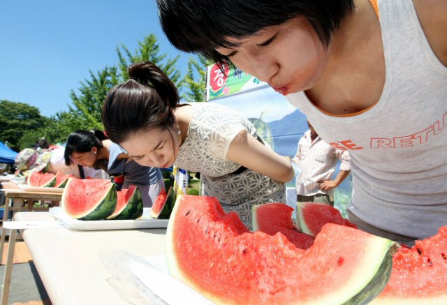URL복사 기사공유하기 스크랩 프린트 메일보내기 글씨키우기 말복인 8일 충북 단양군 어상천면 어상천초등학교에서 수박 빨리 먹기대회가 열렸다. 행사에 참가한 여성들이 수박을 먹는 도중 힘들어 하고 있다.(사진=연합뉴스) 저작권자 © 소비자가 만드는 신문 무단전재 및 재배포 금지 뉴스관리자 다른기사 보기 URL복사 기사공유하기 주요기사 삼성증권, 지난해 순이익 1조84억 원…주당 배당금 4000원 결의 [인사] 금융위원회 김동연 지사, 용인 반도체 현장 방문…"든든한 지원군이 되겠다" 에스티팜, 5600만 달러 규모 원료 공급계약 체결 KB금융, 1조 2000억 원 규모 자사주 861만 주 소각 보람의정부장례식장, 의정부성모병원과 MOU 체결...장례서비스 지원