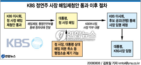 정연주 KBS 사장은 8일 KBS 이사회가 자신에 대한 해임 제청안을 가결한 것과 관련, "이사회의 의결을 인정할 수 없다"고 강력히 반발했다.