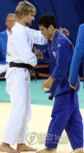 9일 베이징 과학기술대 체육관에서 열린 유도 남자 60kg급 결승에서 최민호와 금메달을 놓고 겨룬 루드비히 파이셔의 스포츠맨쉽에 네티즌들의 찬사가 쏟아지고 있다.