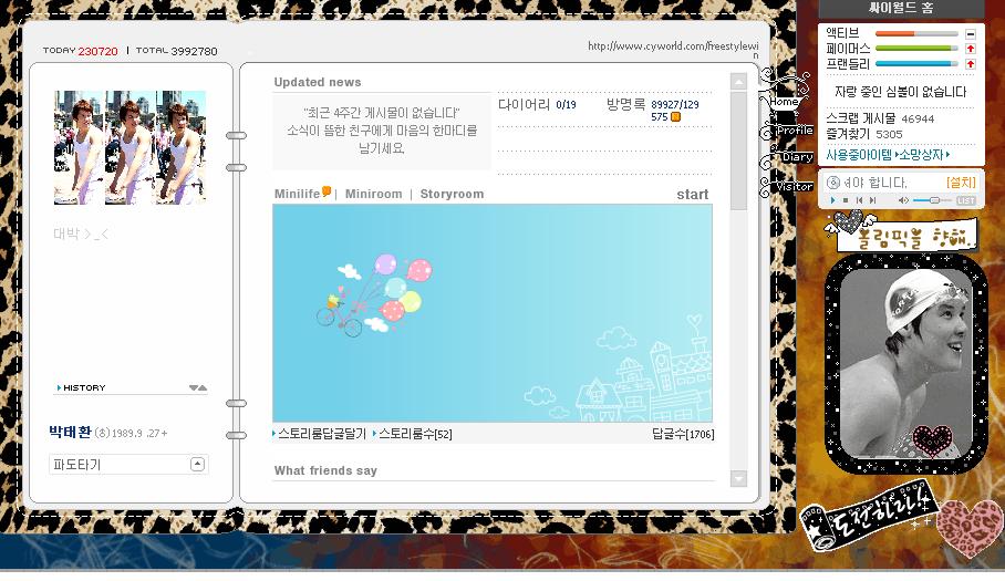 2008 베이징 올림픽에서 금메달 소식을 전해 준 박태환의 미니홈피가 수십만 명의 네티즌들이 찾아 격려의 글들을 남기고 있다.