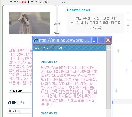 이같은 사실이 알려지면서 김희경은 12일 자신의 미니홈피를 통해 현재 처한 상황에 대한 심정을 나타냈다.