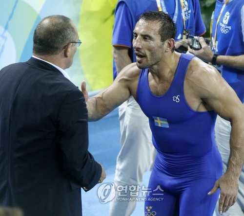 지난 14일 베이징 중국농업대 체육관에서 열린 그레코로만형 84㎏급에서 동메달을 획득한 스웨덴 선수 아라 아브라하미안은 심판의 편파판정으로 패배했다고 주장하며 시상대에서 메달을 팽개쳤다.