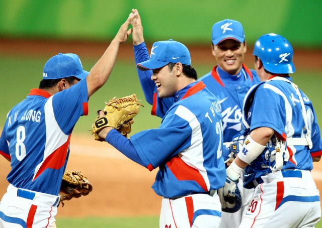 한국은 16일 베이징 우커송 메인구장에서 열린 일본과의 올림픽 예선리그 4차전에서 이대호의 동점투런포, 이종욱의 쐐기번트를 앞세워 일본의 막판 추격을 뿌리치고 5-3 역전승을 거두었다.