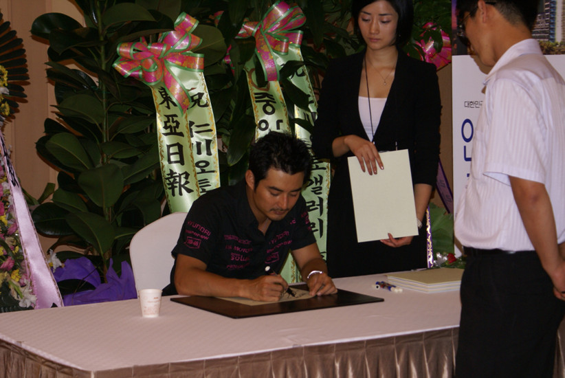 <인천오토갤러리 홍보대사인 탤런트겸 카레이서인 이세창씨가 사업설명회장에서 팬사인회를 열고 있다>