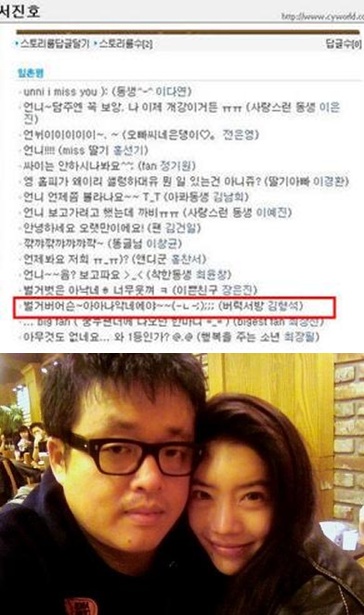 김형석은 22일 자신의 미니홈피에 서진호와 다정하게 찍은 사진을 게재해 애정을 과시했고 서진호의 미니홈피에는 김형석을 ‘버럭서방’이라는 일촌명으로 지정해 놓은 사실이 알려져 화제가 되고 있다.