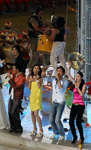 그러나 비는 24일 성화가 점화되고 마지막 무대에서 홍콩의 천후이린(진혜림), 대만가수 왕리홍, 중국 가수 겸 배우 한쉬에 등과 함께 등장해 경쾌하게 '베이징, 베이징, 아이러브 베이징'을 불렀다.