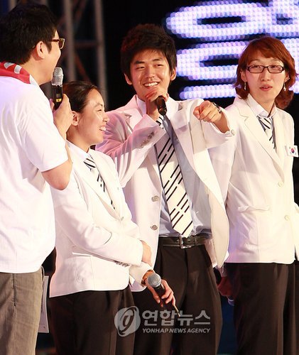 이날 선수단을 위해 마련된 환영행사에는 이용대 외에도 펜싱 남현희와 남자 유도 은메달리스트 김재범이 이원진의 '시작되는 연인들을 위해'를 듀엣으로 열창했고, 여자 역도 은메달리스트인 윤진희는 인순이와 함께 '거위의 꿈'을 부르는 등 선수들은 그간 숨겨놓은 끼를 유감없이 발산했다. 윤진희는 노래를 부르던 중 故김동희 코치를 그리며 눈물을 흘리기도 했다.
