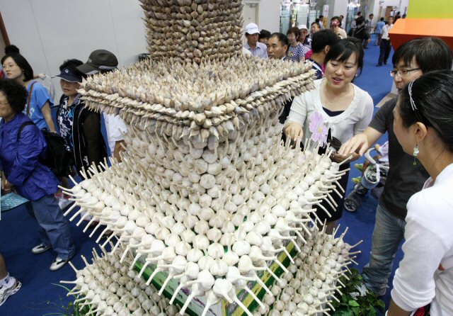 URL복사 기사공유하기 스크랩 프린트 메일보내기 글씨키우기 28일 오전 삼성동 코엑스 태평양홀에서 '지방의 재발견-개성 만점 Korea!'라는 주제로 전국 53개 지역이 참가한 가운데 열리고 있는 '제5회 대한민국 지방자치경영 대전'이 개최됐다.이 행사에서 한 지방자치단체가 설치해 놓은 마늘로 장식된 탑이 관람자들의 눈길을 사로잡고 있다.(사진-연합뉴스) 저작권자 © 소비자가 만드는 신문 무단전재 및 재배포 금지 스포츠연예팀 다른기사 보기 URL복사 기사공유하기 주요기사 삼성증권, 지난해 순이익 1조84억 원…주당 배당금 4000원 결의 [인사] 금융위원회 김동연 지사, 용인 반도체 현장 방문…"든든한 지원군이 되겠다" 에스티팜, 5600만 달러 규모 원료 공급계약 체결 KB금융, 1조 2000억 원 규모 자사주 861만 주 소각 보람의정부장례식장, 의정부성모병원과 MOU 체결...장례서비스 지원