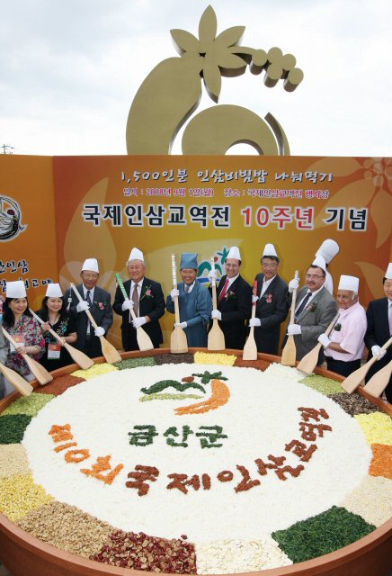 URL복사 기사공유하기 스크랩 프린트 메일보내기 글씨키우기 제28회 금산인삼축제가 펼쳐지고 있는 충남 금산에서 1일 국제인삼교역전 10주년을 기념하는 1500인분 인삼비빔밥 나눠먹기 행사가 열리고 있다. 1500인분의 인삼비빔밥은 금산인삼 1천500년의 역사를 상징한다.(사진=연합뉴스) 저작권자 © 소비자가 만드는 신문 무단전재 및 재배포 금지 뉴스관리자 다른기사 보기 URL복사 기사공유하기 주요기사 삼성증권, 지난해 순이익 1조84억 원…주당 배당금 4000원 결의 [인사] 금융위원회 김동연 지사, 용인 반도체 현장 방문…"든든한 지원군이 되겠다" 에스티팜, 5600만 달러 규모 원료 공급계약 체결 KB금융, 1조 2000억 원 규모 자사주 861만 주 소각 보람의정부장례식장, 의정부성모병원과 MOU 체결...장례서비스 지원