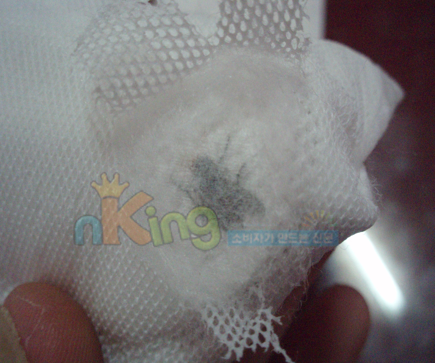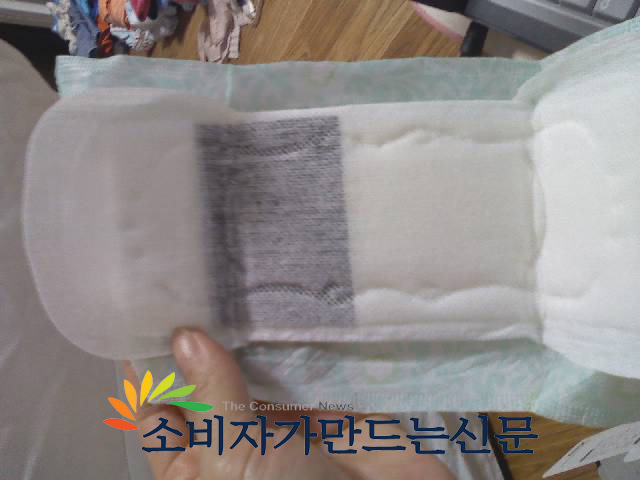 #사례 1 - 서울 광장동의 이모씨는 지난 8월 30일 생리대 '좋은 느낌 - 울트라 중형'을 이용하려고 펼쳐든 순간 패드 속에 깔려있는 검은 물체를 보고 깜짝 놀랐다. 누가 봐도 제조과정에서 유입된 것 명백한 이물질이었다.