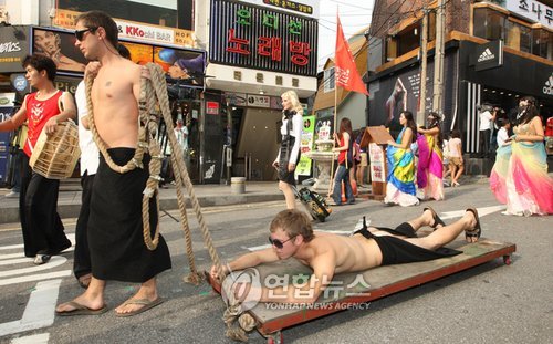 URL복사 기사공유하기 스크랩 프린트 메일보내기 글씨키우기 3일 개막한 제7회 2008 한국실험예술제에 참가한 해외작가들과 국내작가들이 서울 홍대 인근에서 예술제를 알리는 퍼레이드를 하고 있다. 오는 7일까지 열리는 이번 예술제에는 20명의 해외작가와 130명의 국내작가들이 참가한다.(사진=연합뉴스) 저작권자 © 소비자가 만드는 신문 무단전재 및 재배포 금지 뉴스관리자 다른기사 보기 URL복사 기사공유하기 주요기사 삼성증권, 지난해 순이익 1조84억 원…주당 배당금 4000원 결의 [인사] 금융위원회 김동연 지사, 용인 반도체 현장 방문…"든든한 지원군이 되겠다" 에스티팜, 5600만 달러 규모 원료 공급계약 체결 KB금융, 1조 2000억 원 규모 자사주 861만 주 소각 보람의정부장례식장, 의정부성모병원과 MOU 체결...장례서비스 지원