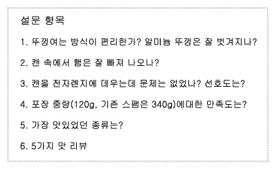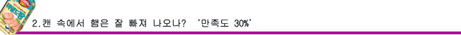 이전 캔 뚜껑식 용기에비해 편리하고 안전하다는 점에서 패널 10명전원이 만족감을 표시했다.