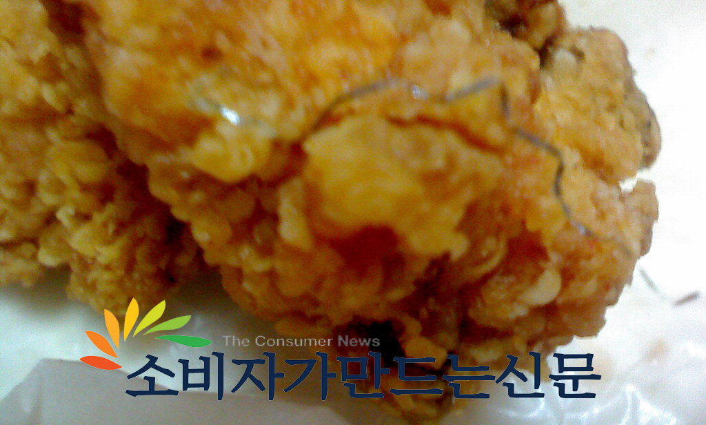 치킨전문 대형체인점인 KFC의 치킨에서 철수세미 조각을 발견한 소비자의 하소연이다.