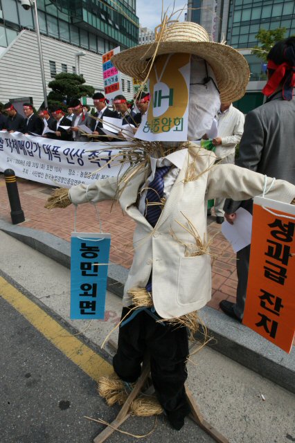 URL복사 기사공유하기 스크랩 프린트 메일보내기 글씨키우기 30일 오전 서울 농협중앙회 정문앞에서 열린 한국농업경영인중앙연합회 '농협 쌀 자체매입가 인상 촉구 기자회견' 에서 참가자들이 농협이 생산비 폭등으로 인한 농민의 고통 분담에 나설 것을 요구하며 농협 허수아비를 앞세워 기자회견을 하고 있다.(사진=연합뉴스) 저작권자 © 소비자가 만드는 신문 무단전재 및 재배포 금지 뉴스관리자 다른기사 보기 URL복사 기사공유하기 주요기사 LG전자, ISE 2026서 ‘LG 매그니트’ 공개…설치·운영 편의성 강화 정진완 우리은행장 “올해 경쟁은행과의 격차 줄이겠다” 하나금융, 올해 생산적 금융에 17.8조 공급한다 이재용 "숫자에 취하지 말라"…임원들에 '마지막 기회' 강조 흰색 패브릭 소파 변색됐는데...'자연스런 현상'이라며 무상AS 거부 김동연 지사 "북오산IC 진입로 3차선으로 늘려 체증 해소"