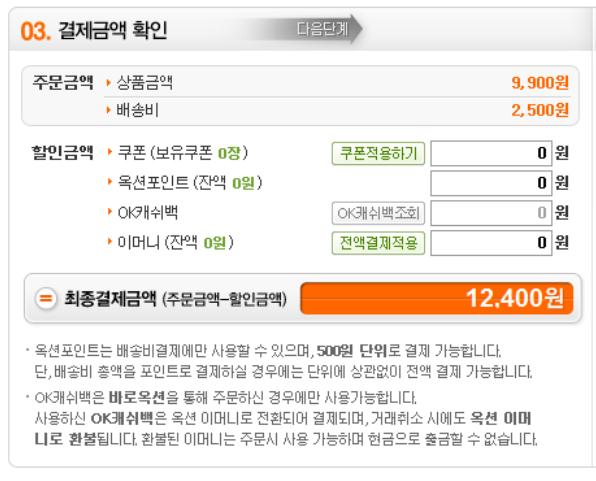 #사례 3- 부산 대연동의 김모씨는 지난 4월 28일 옥션에서 장식장을 구매하면서 3000원의 OK캐쉬백을 결제에 이용했다.
