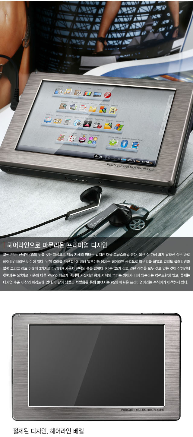 정명은 P5라는 모델명에서 5에 해당하는 역할을 해준 5인치형 LCD액정이 위치한다.