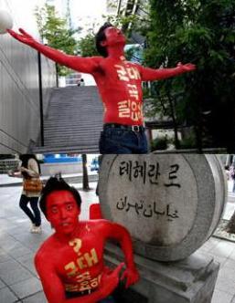 옷 벗는건 문제가 아니지... 그러나 빨갱이로 몸 칠하고 저렇고 있는데 사람들에게 혐오감 주는데... 그건 잘못이자나