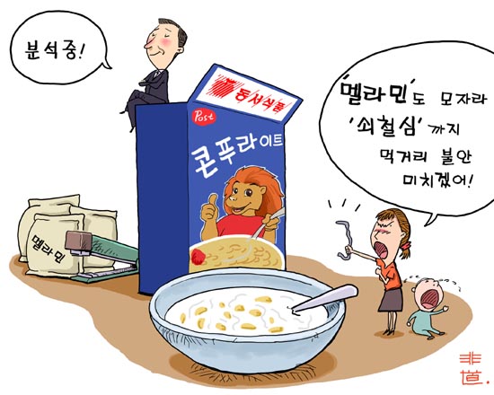 ['송곳'만평]"동서식품, 시리얼에 녹슨철심 박아"