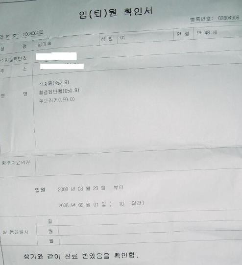 결국 119 구급차를 불러 응급실로 실려 갔고 식중독으로 입원해 10일 동안 치료를 받았다.