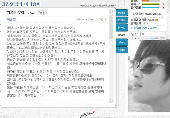 "죽여라! 살려라!" 최진영미니홈피에 네티즌 북새통!