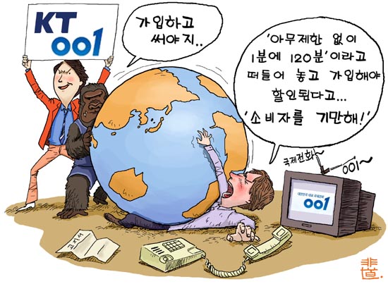 본지에 KT 001국제전화 광고의 부당성을 고발한 소비자는 " 1분에 120원이라고 요란하게 떠드는 광고는 생거짓말"이라고 분통을 터트렸다.