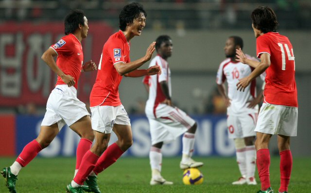 URL복사 기사공유하기 스크랩 프린트 메일보내기 글씨키우기 '희비가 교차하네~'15일 서울 상암월드컵경기장에서 열린 2010 남아프리카공화국월드컵축구 아시아지역 최종예선 2차전 한국과 아랍에미리트연합과의 경기에서 곽태휘가 한국대표팀의 네번째 골을 넣고 기뻐하고 있다.허정무 감독이 이끌고 주장 박지성이 중심을 잡은 축구 국가대표팀이 이근호의 2골과 박지성, 곽태휘의 득점에 힘입어 4-1로 대승을 거두며 한국 축구의 힘을 보였다. 저작권자 © 소비자가 만드는 신문 무단전재 및 재배포 금지 스포츠연예팀 다른기사 보기 URL복사 기사공유하기 주요기사 ‘소비자 보호’ 사라진 금감원 금융소비자보호처...앙꼬 없는 찐빵? 시중은행, 지점 158곳 줄이고 출장소 74곳 늘려... 내점 고객 줄면서 몸집 축소 10대 건설사 엇갈린 분양 전략…삼성·대우 ‘선별공급’, DL이앤씨 ‘물량확대’ 위기의 백화점 생존전략...롯데-핵심 점포, 신세계-명품·미식으로 승부 '밥솥 명가' 엇갈리는 마케팅 전략…쿠쿠-탈밥솥·제품 다각화, 쿠첸-밥솥 강화 집중 [따뜻한 경영] 현대모비스 ‘주니어 공학교실’로 과학 인재 육성