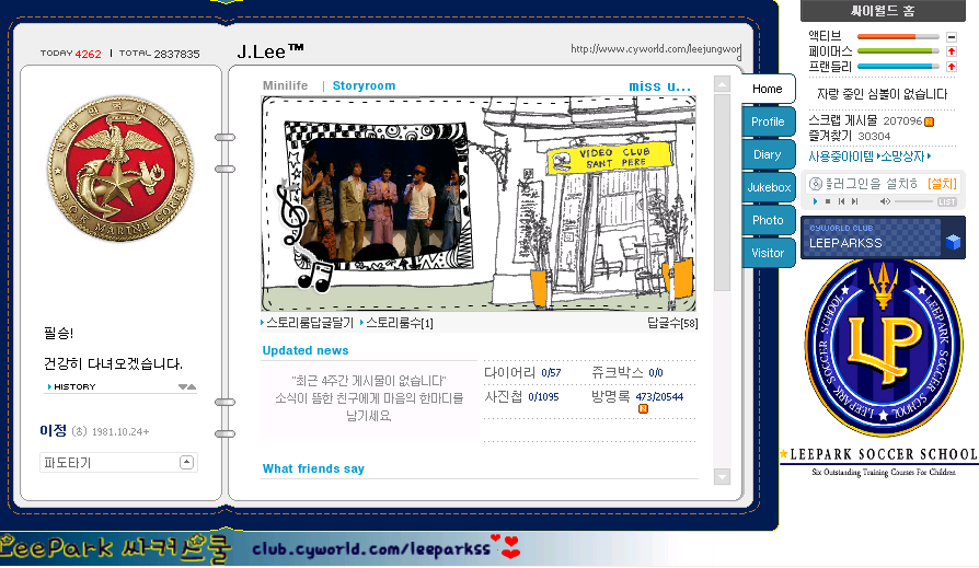지난 20일 해병대로 입대한 가수 겸 배우 이정(본명 이정희ㆍ27)이 입대 전 출연한 프로그램에서 짧은 머리와 미니홈피 등에 자신의 입대를 미리 예고했던 것이 뒤늦게 알려져 화제를 모으고 있다.