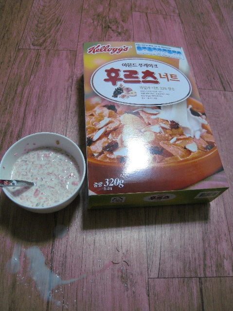 "켈로그 시리얼 먹을때 벌레 있는지 주의하세요. 벌레 나오는 일이 다반사라서 별거 아니랍니다"