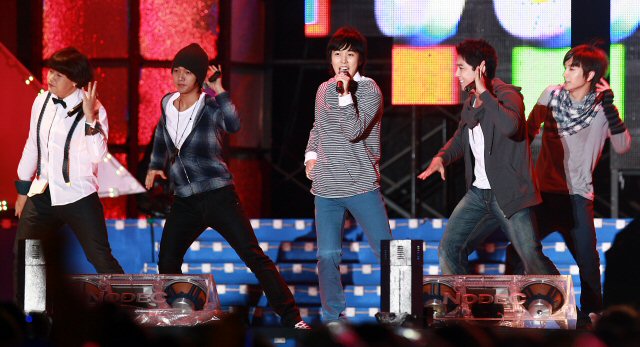 그룹 슈퍼주니어 해피가 25일 오후 잠실종합운동장 내 특설무대에서 열린 2008 서울한류페스티벌에서 멋진 무대를 선사하고 있다.