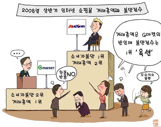 한국소비자원이 2008년 상반기(1월~6월)에 접수된 전자상거래와 관련한 소비자 불만을 집계한 결과 오픈마켓중 옥션의 소비자불만 접수가 부동의 1위를 차지했다.