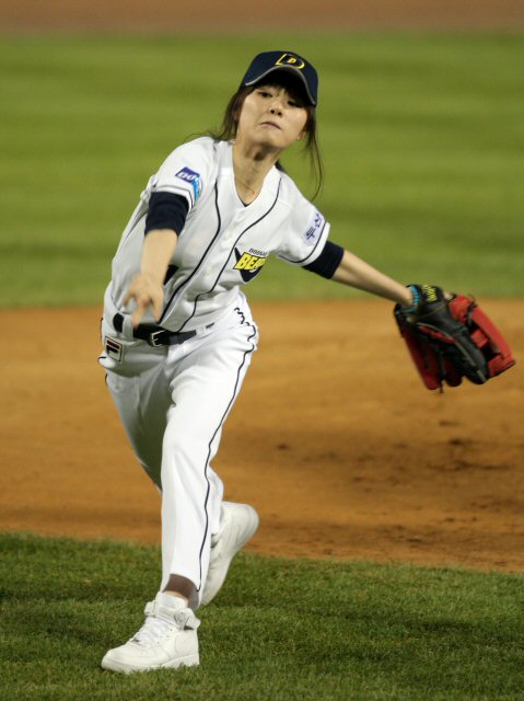당싱 멋진 시구폼으로 메이져리그의 투수 페드로 마르티네즈의 이름을 본 딴 '홍드로'라는 애칭도 얻은 홍수아는 다시 한번 시구에 나서 녹실지 않은 실력을 과시했다.