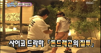 둘은 오픈카를 타고 빅뱅의 ‘거짓말’을 립싱크하며 빅뱅이 된 듯 만족한 표정을 지었고, 원더걸스의 ‘노바디(Nobody)’를 따라 부르며 사랑의 총알을 날렸다.