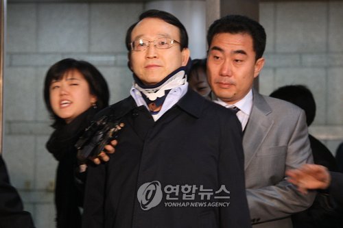 납품업체 등으로부터 수억원을 받은 혐의(배임수재)로 구속영장이 청구된 남중수 KT 사장이 5일 오전 서울 서초동 서울중앙지법에서 영장실질심사를 받기 위해 법정으로 향하고 있다.