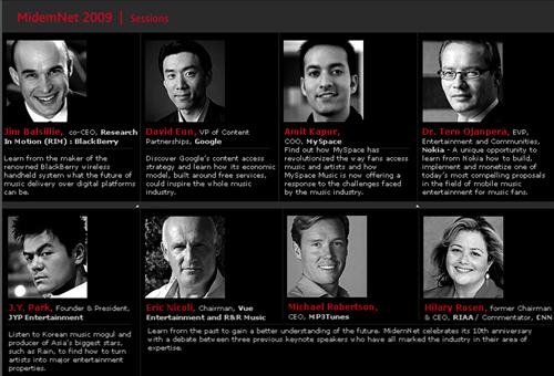 올해에는 David Eun(구글 부사장), Amit Kapur(MySpace수석 부사장(실무 총 책임자)), Dr.Tero Ojanpera (Nokia전무이사), Jim Balsillie (Research In Motion ; Black Berry 공동 대표), Michael Robertson (MP3Tunes대표), Eric Nicoli (Vue Entertainment and R&R Music회장), Hilary Rosen (RIAA 회장 겸 대표, CNN 해설위원) 등의 세계 음악계의 거물들이 참석하는 가운데 박진영이 나란히 기조연설자로 자리를 함께 하게 된다. (사진 = 연합뉴스)