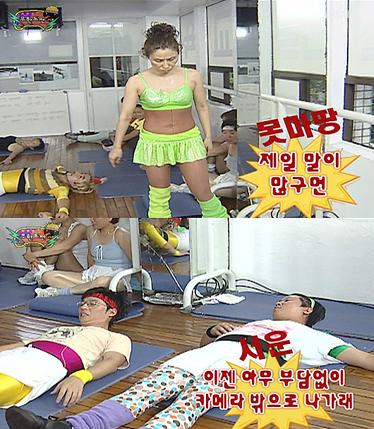 때문에 에어로빅 훈련장에 늦게 도착한 정형돈은 ‘염정인 원장’에게 구박을 받으면서 훈련을 시작했다.